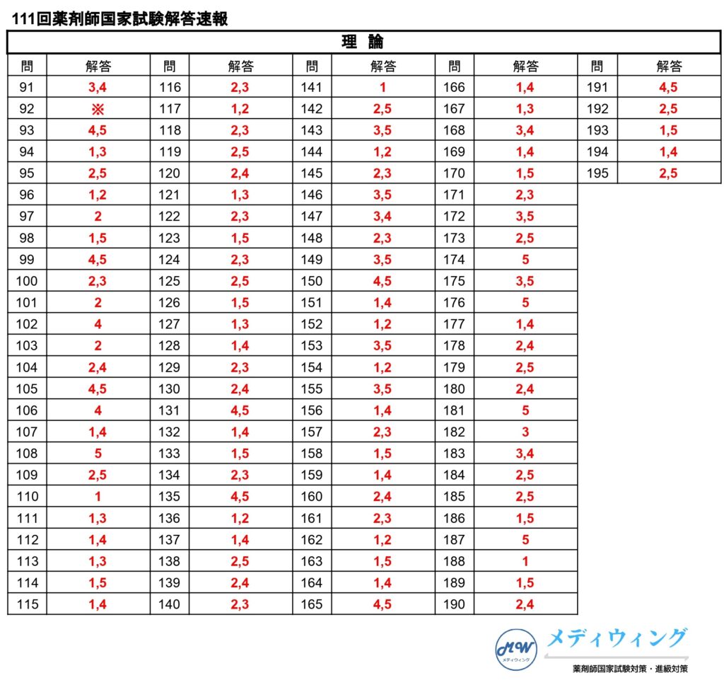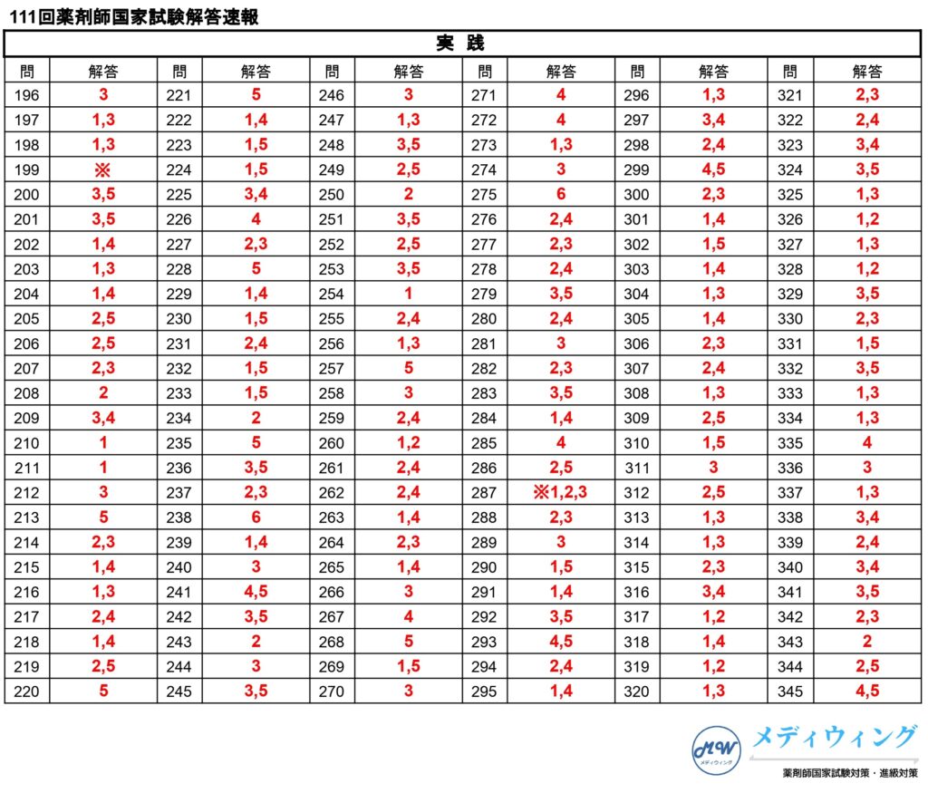 第111回薬剤師国家試験解答速報