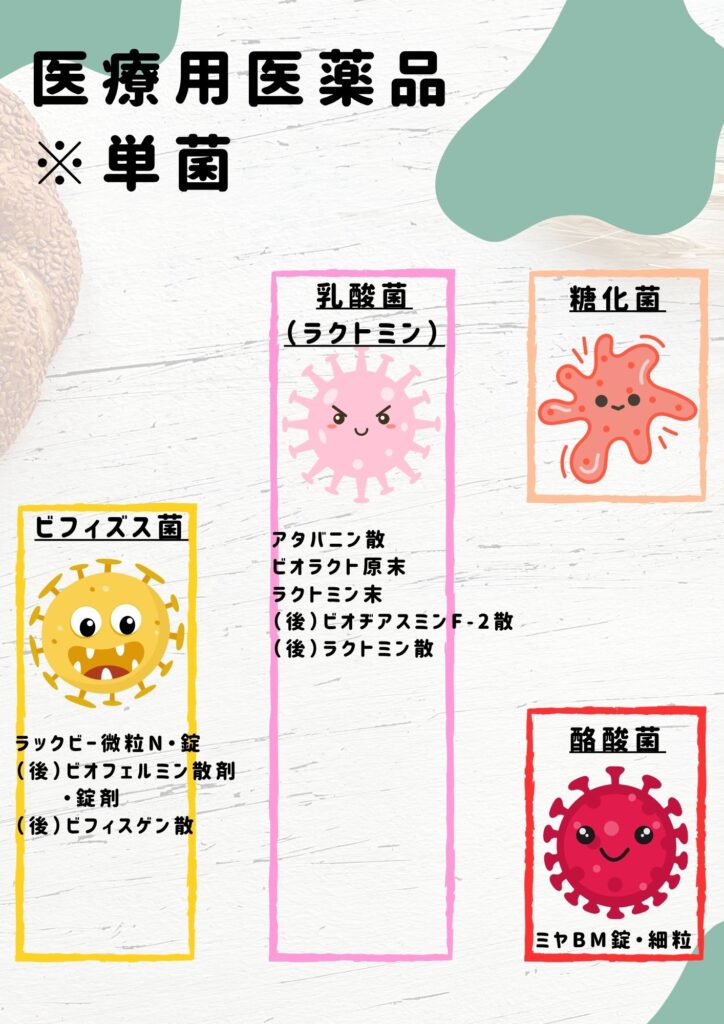 糖化菌のみ、単独でのお薬はありません。