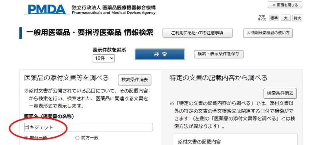 「一般用医薬品・要指導医薬品の添付文書検索」