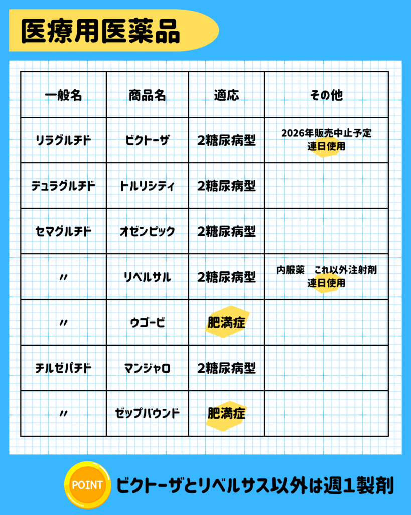 GLP-1のみ▶ビクトーザ・トルリシティ・オゼンピック・リベルサス・ウゴービ