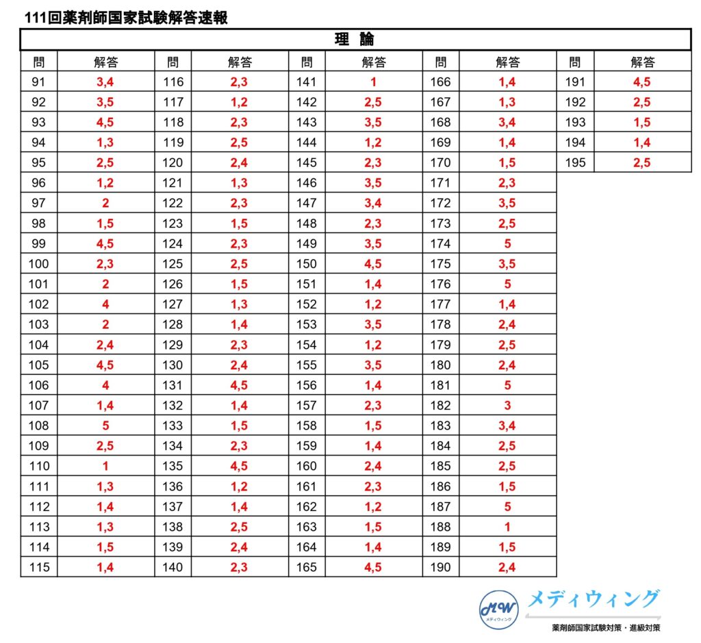 第111回薬剤師国家試験解答速報