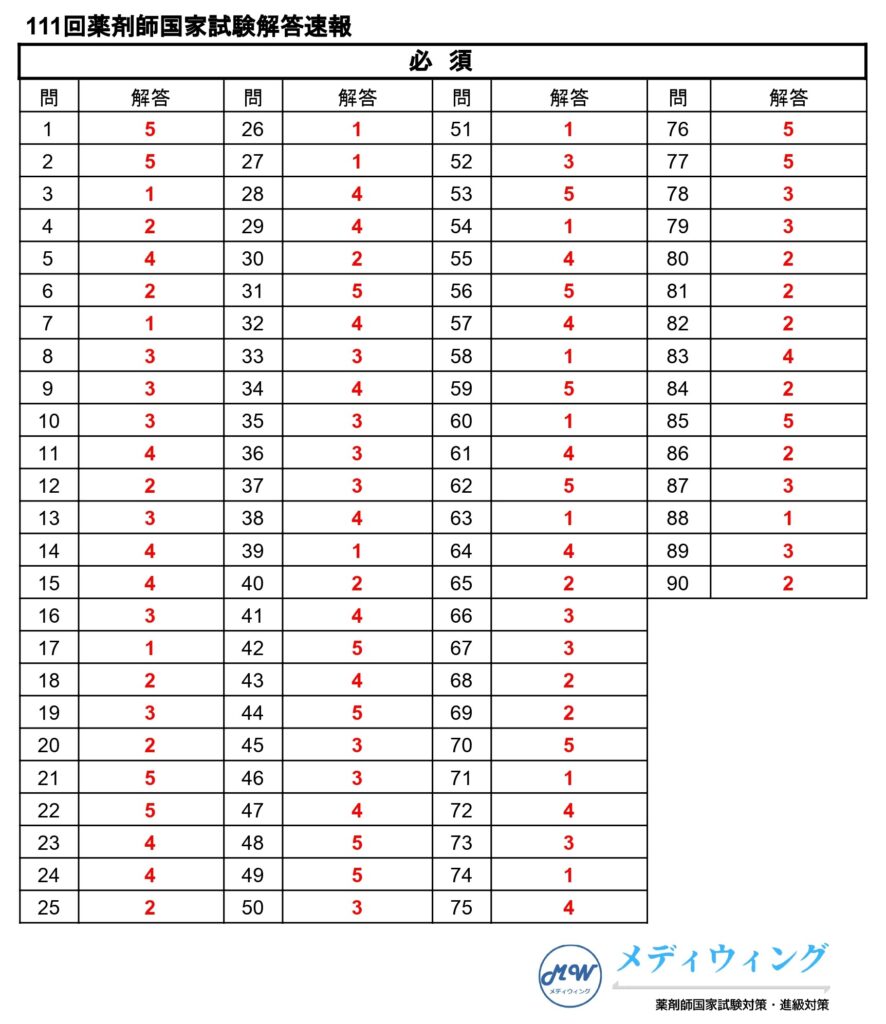 【解説付き】111回薬剤師国家試験 問1~問90 必須 解答解説