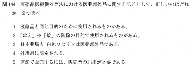 2:○ 「はえ」や「蚊」の防除を目的とする殺虫剤などは、防除用医薬部外品として規定されています。