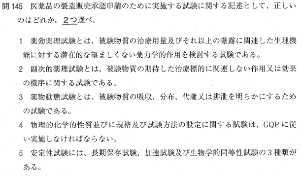 1:× 期待される治療標的への作用を検討するのは「薬効薬理試験」です。設問は「安全薬理試験」の説明です。