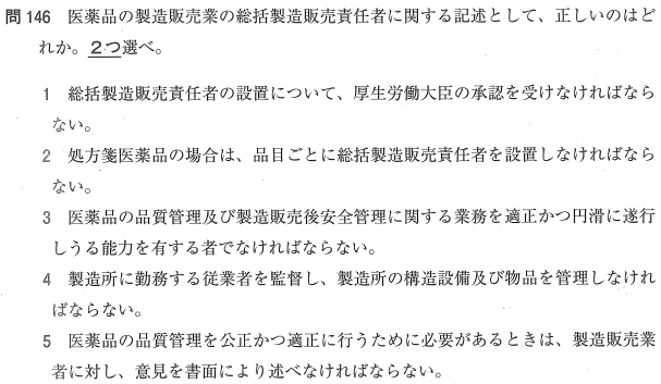 3:○ 品質管理(GQP)や安全管理(GVP)を適正に遂行できる能力を有する者である必要があります。