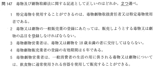 3:○ 毒物や劇物を18歳未満の者に交付することは禁止されています。