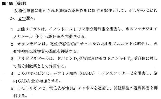 4:× カルバマゼピンはNa+チャネル遮断が主機序です。GABAトランスアミナーゼを阻害するのはビガバトリン等です。