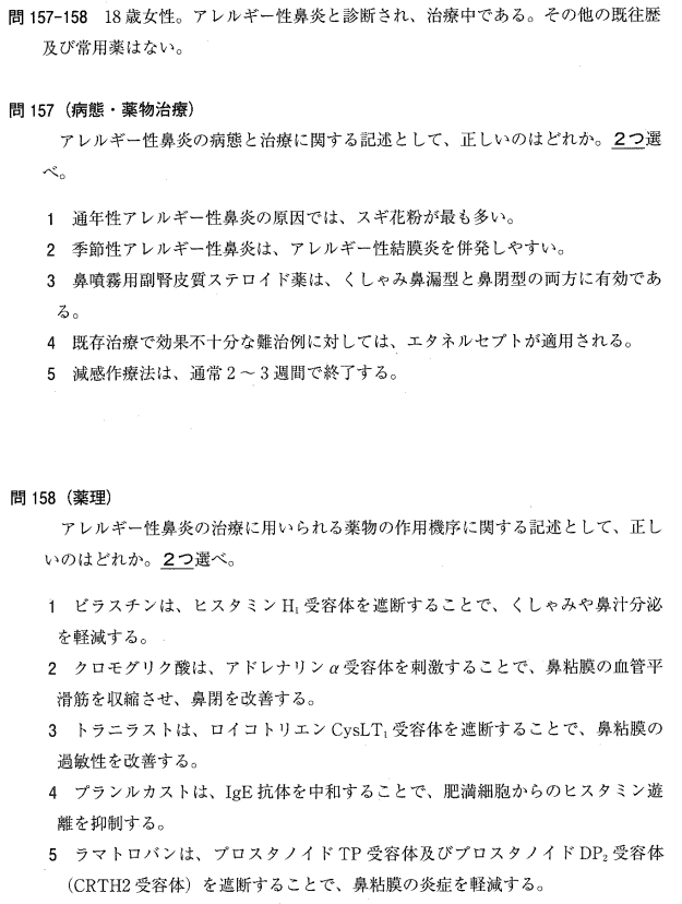 4:× エタネルセプトは関節リウマチなどの薬です。鼻炎の重症例に用いられるのはオマリズマブです。