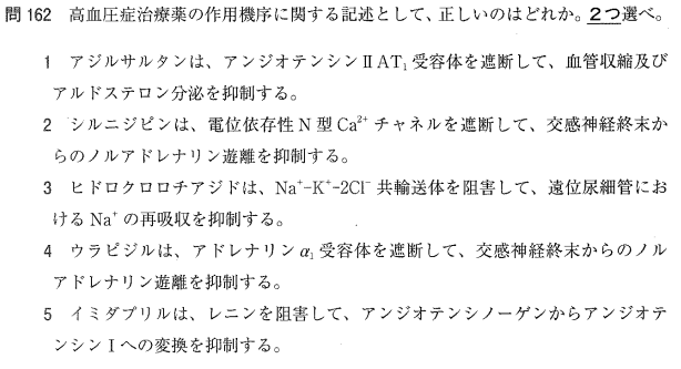 3:× ヒドロクロロチアジドは「Na+-Cl-共輸送体」を阻害します。Na+-K+-2Cl-共輸送体を阻害するのはループ利尿薬です。