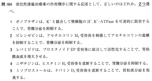 2:× ピレンゼピンはM1受容体を「遮断」して胃酸分泌を抑えます。刺激ではありません。