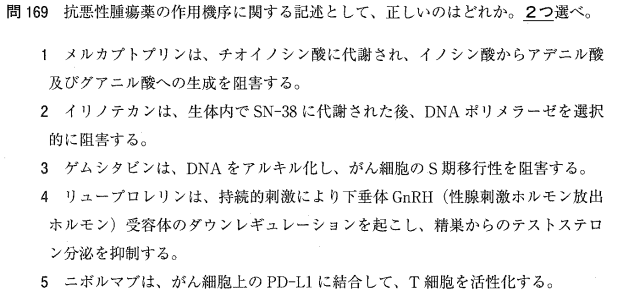 5:× レナリドミドは催奇形性があるため、妊婦には禁忌です。