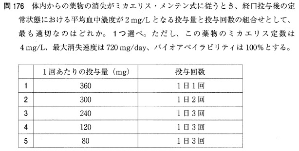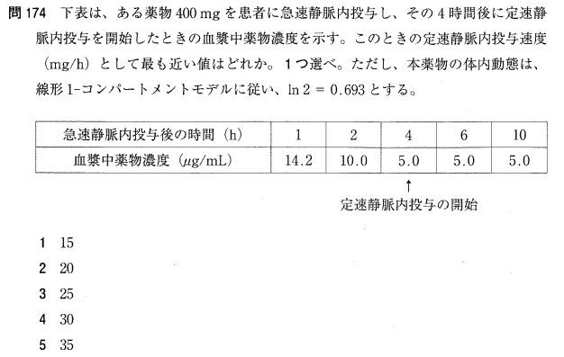 4:× 4時間時点での濃度が「8」となっていますが、積算50%(濃度6)であるべきなので誤りです。