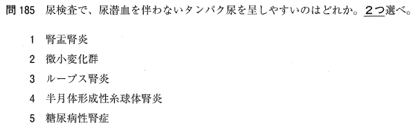 3:× ループス腎炎は糸球体炎症を伴うため、血尿が見られます。