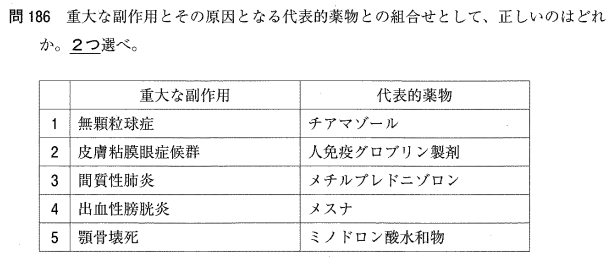 1:○ チアマゾールの重大な副作用として、無顆粒球症(白血球減少)が知られています。