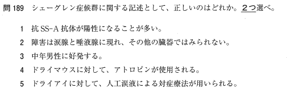 1:○ シェーグレン症候群では、自己抗体である抗SS-A抗体が陽性になることが多いです。