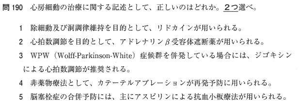 1:× リどカインは心室性不整脈に用います。心房細動には使いません。