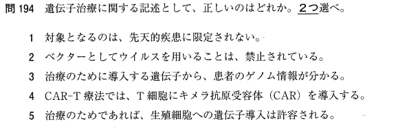 5:× 次世代への影響を考慮し、生殖細胞への遺伝子導入は国際的に禁止されています。