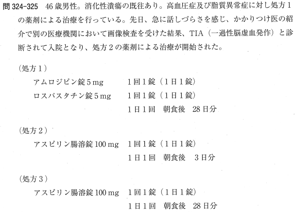 3:○ オザグレルナトリウムはトロンボキサンA2合成酵素を阻害して血小板凝集を抑制する薬で、発症後5日以内の脳血栓症(心原性脳塞栓症を除く)急性期に適用されます。本患者はTIA先行の非心原性が疑われるため適切です。