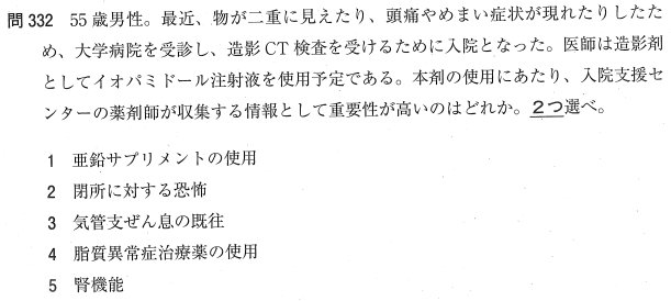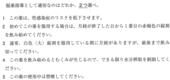 正答:1,2,3(国試ではいずれか2つで正答とし採点された。)
