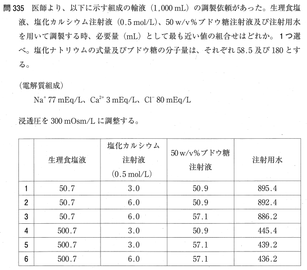 必要な電解質濃度と浸透圧から、各製剤の量を求めます。