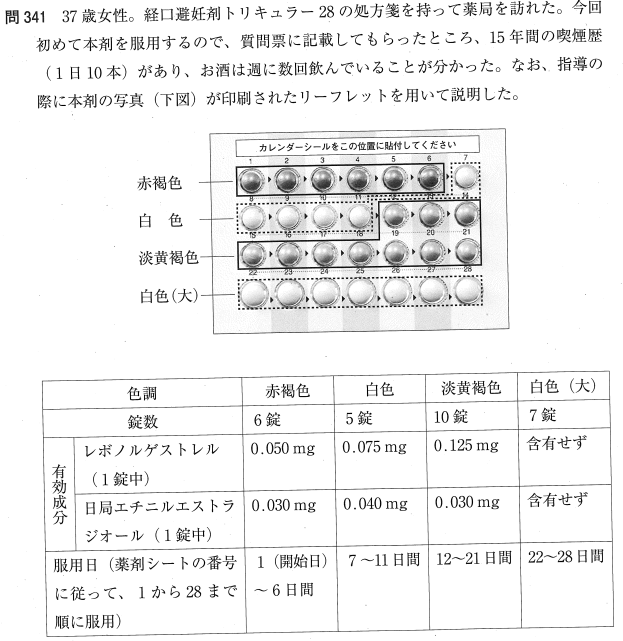 5:○ 35歳以上で喫煙する女性が経口避妊薬を服用すると、心筋梗塞や脳卒中などの重大な心血管系障害のリスクが高まります。本患者は37歳であり喫煙習慣(1日10本)があるため、服用に際しては禁煙することが強く推奨されます(1日15本以上の場合は禁忌となります)。