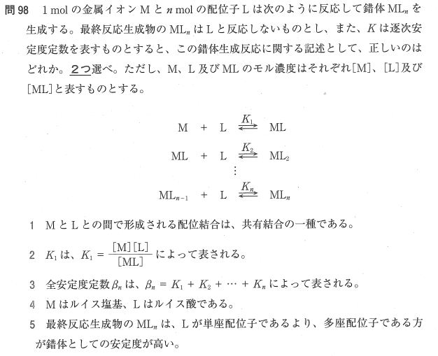 2:× 選択肢は逆数になっています。正しくは、K1=[ML]/[M][L]です