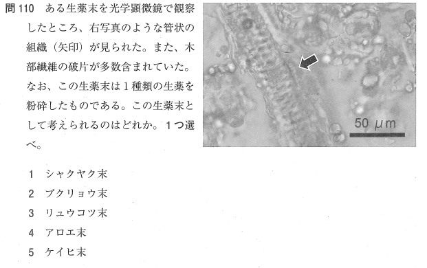 2~4:× ブクリョウ、リュウコツ、アロエには、写真のような「導管(環紋・螺旋紋導管)」という植物組織は含まれません。