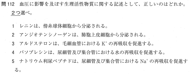 3:× アルドステロンは、集合管などで「ナトリウムイオンの再吸収」と「カリウムイオンの排泄」を促進します。