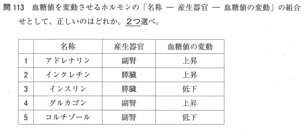 1:○ アドレナリンは副腎髄質から分泌され、グリコーゲン分解を促進して血糖値を上昇させます。