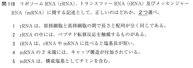 2:○ rRNAの中には、ペプチド結合の形成を触媒する酵素活性を持つもの(リボザイム)があります。