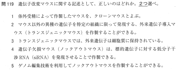 4:× siRNAで遺伝子発現を抑えるのは「ノックダウン」です。ノックアウトは通常、遺伝子そのものを破壊することを指します。