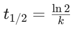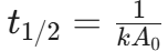0次反応、1次反応、2次反応の半減期は次のとおりである。