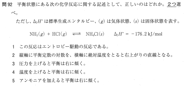 1:× 気体から固体になる反応で乱雑さが減るため、エントロピー変化は負です。発熱反応によって進むエンタルピー駆動の反応です。