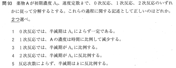 1:× 0次反応の半減期は初期濃度に比例します。