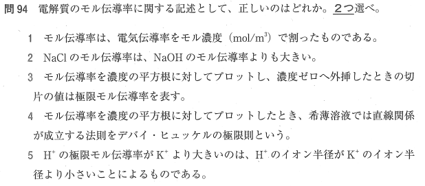 4:× この直線関係を表す法則はコールラウシュの法則です(デバイ・ヒュッケルの極限則は活性係数に関するもの)。