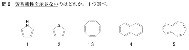 解説: 化合物の「芳香族性」の有無を判定する問題です 。