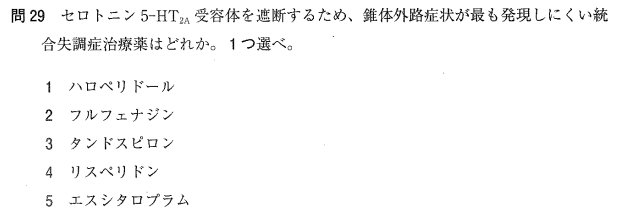 解説: リスペリドンは、ドパミンD2受容体遮断作用に加えて、セロトニン5-HT2A受容体遮断作用を併せ持つ非定型抗精神病薬(SDA:セロトニン・ドパミン・アンタゴニスト)です 。5-HT2A受容体を遮断することで黒質線条体経路のドパミン遊離が促進されるため、ハロペリドールなどの定型抗精神病薬に比べて錐体外路症状(パーキンソン症候群など)が発現しにくいという特徴があります 。