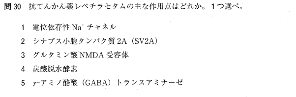 解説: レベチラセタムは、神経末端に存在するシナプス小胞タンパク質2A(SV2A)に特異的に結合し、グルタミン酸などの興奮性神経伝達物質の遊離を抑制することで抗てんかん作用を示します 。