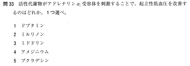 解説: ミドドリンはプロドラッグであり、体内で活性代謝物(デスグリミドドリン)に変換された後、末梢の交感神経α1受容体を直接刺激して血管を収縮させます 。これにより血圧を上昇させ、起立性低血圧を改善します 。