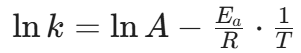 したがって、縦軸にln k、横軸に1/Tをプロットすると、傾きが負の直線(傾きが-Ea/R)になります 。