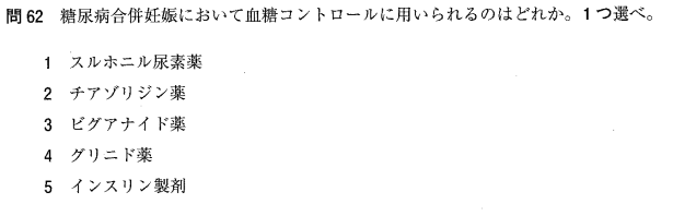 解説: 妊娠中の糖尿病(妊娠糖尿病や糖尿病合併妊娠) では、経口血糖降下薬(スルホニル尿素薬など )は胎盤を通過し、胎児の低血糖や催奇形性の懸念があるため原則禁忌です。そのため、胎盤を通過しないインスリン製剤 を用いて厳格な血糖コントロールを行います。
