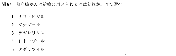 解説: 前立腺がん の増殖は男性ホルモン(アンドロゲン)に依存しているため、ホルモン療法(内分泌療法)が基本となります。デガレリクス はGnRHアンタゴニストであり、下垂体のGnRH受容体を遮断することでゴナドトロピン(LH、FSH)の分泌を即座に抑制し、テストステロンの産生を抑えて抗腫瘍効果を示します。