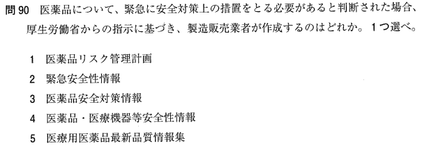 解説: 医薬品による重篤な副作用などが発生し、緊急に安全対策上の措置(警告欄の新設や使用上の注意の重大な改訂など)をとる必要があると厚生労働省が判断した場合、その指示に基づいて製造販売業者が作成・配布する文書を緊急安全性情報 (イエローレター)と呼びます。